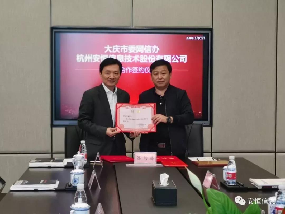 大庆市互联网信息办公室与安恒信息签订合作协议,共推数字大庆建设