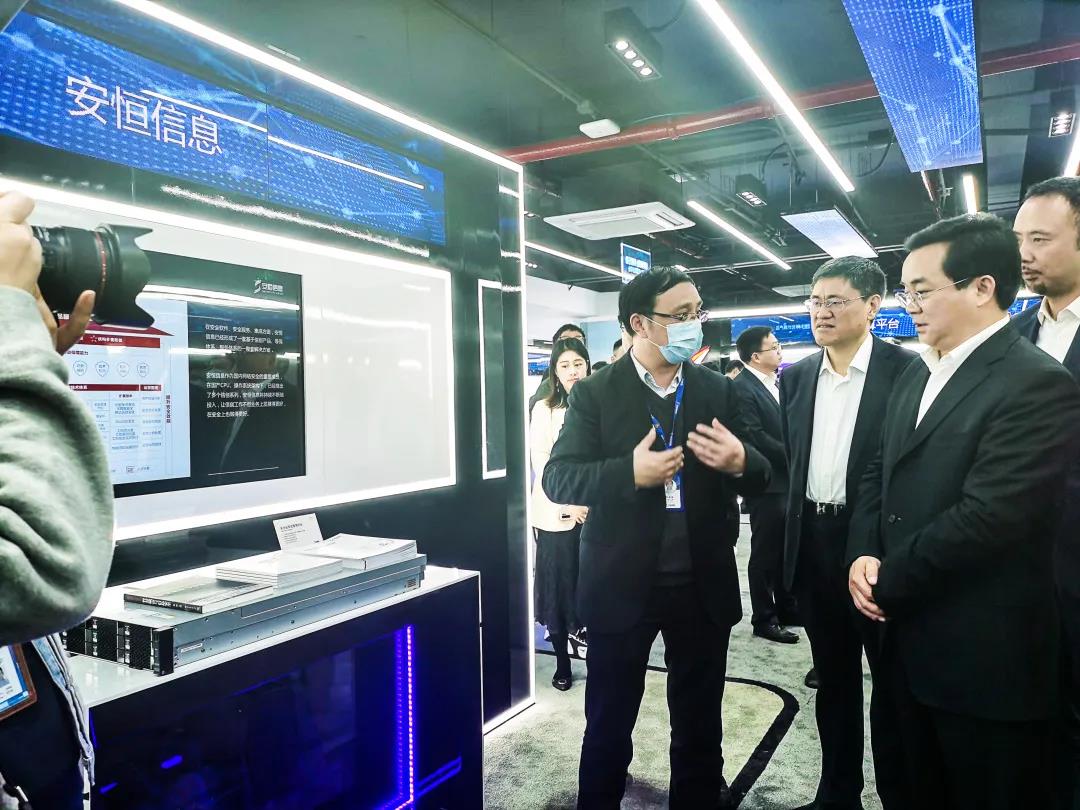浙江省人民政府副省长高兴夫莅临浙江省鲲鹏生态创新中心的安恒信息展台,了解安恒信息基于鲲鹏生态的信创解决方案。安恒信息是首批入驻浙江省鲲鹏生态创新中心的企业。