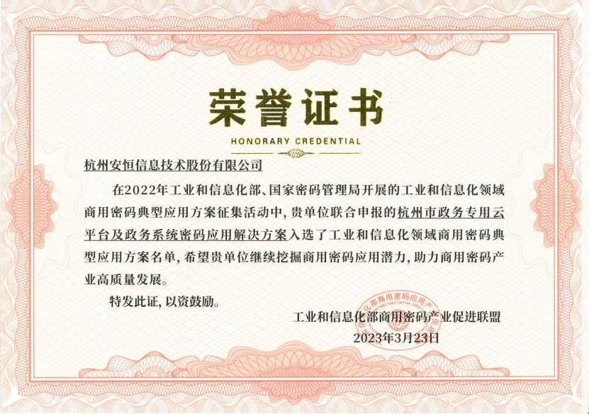 实力认证!安恒信息入选工信部商用密码典型应用方案名单