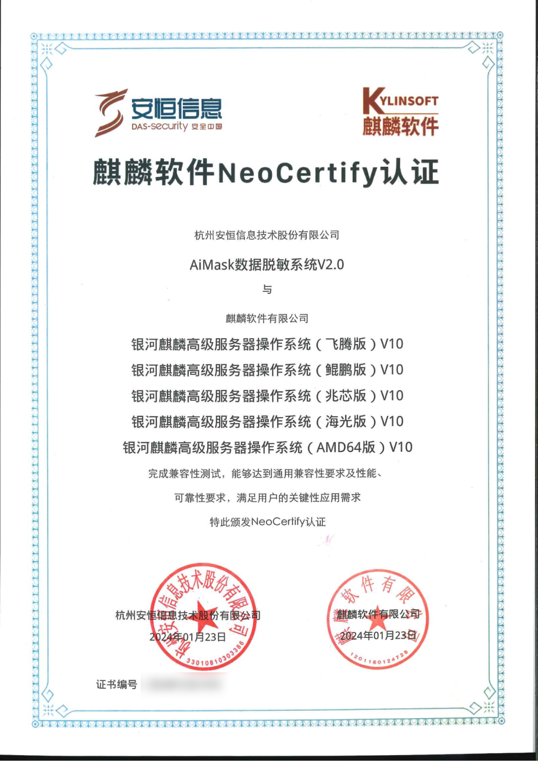 1. 通过信通院《数据脱敏能力检测》(2023)