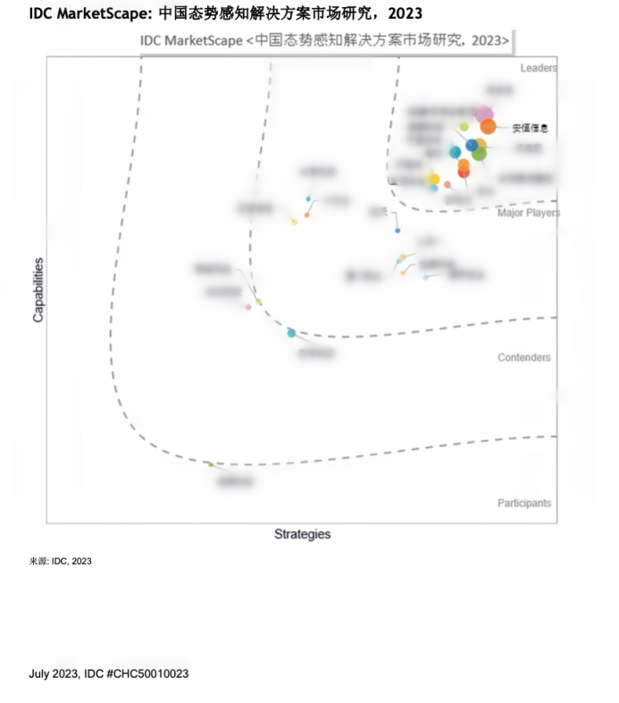 《IDC MarketScape:中国态势感知解决方案市场研究,2023》报告指出,安恒信息连续三届位居该报告领导者地位,成为中国态势感知解决方案市场领导者企业之一。